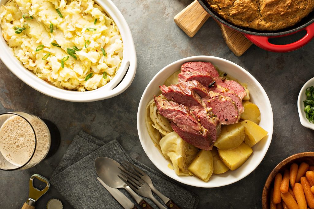 Think corned beef, cabbage, Guinness, potatoes and Irish cream!