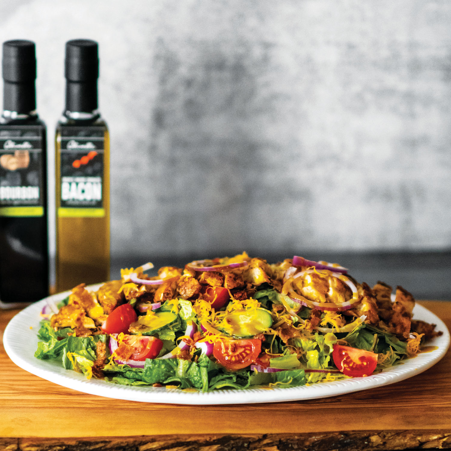 Crispy chicken, sweet and tangy dressing, and all the toppings to boot. This